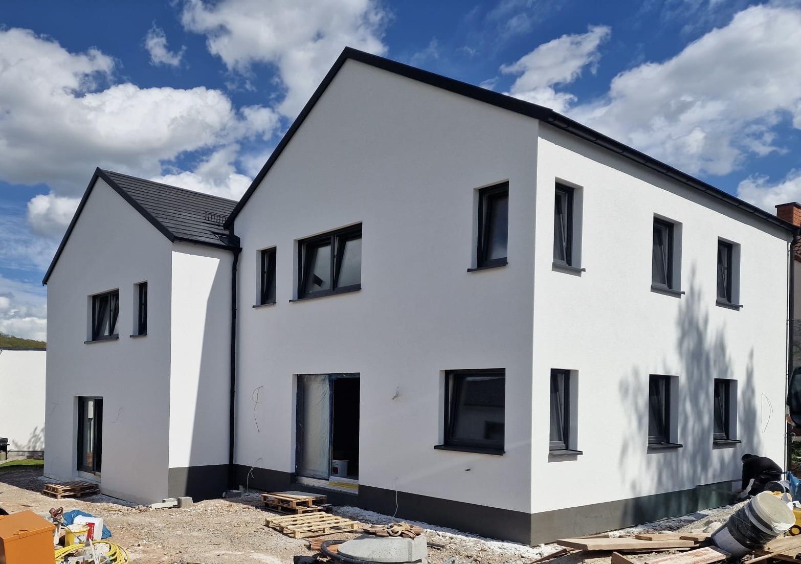 Es wurde ein Doppelhaus nach dem KFW Standard 55 errichtet und Mitte 2024 fertiggestellt.