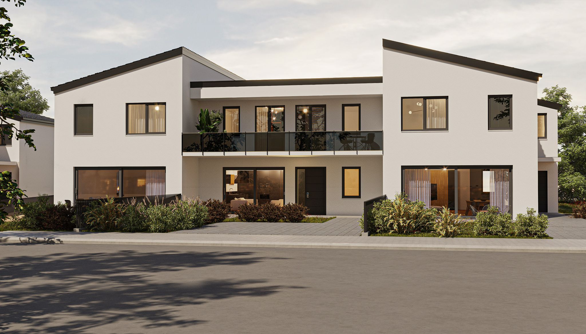 Es wurden 2 Doppelhäuser nach dem KFW Standard 55 errichtet und Mitte 2022 fertiggestellt.